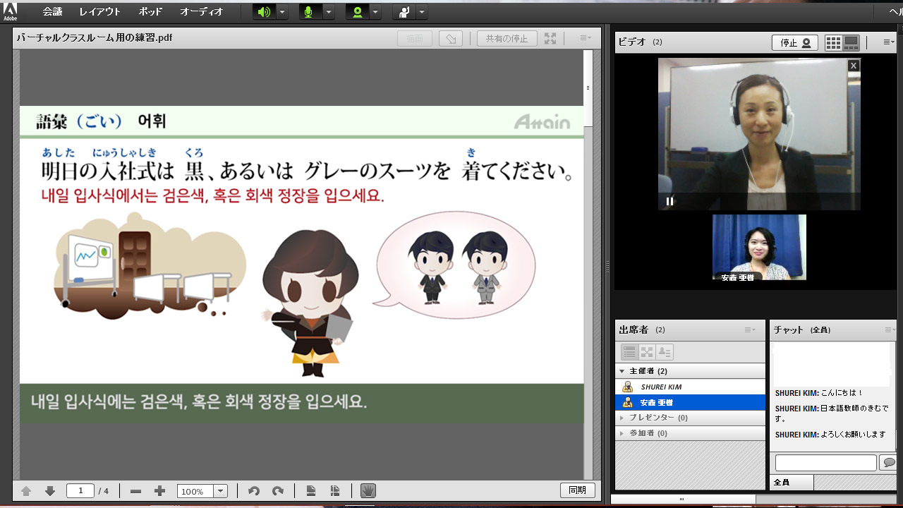 JLPT合格を目指して、eラーニング教材「Attain Online Japanese」を利用した上に、オンラインで日本語講師と直接に交流し、日本語レッスンを受けるサービスです。
