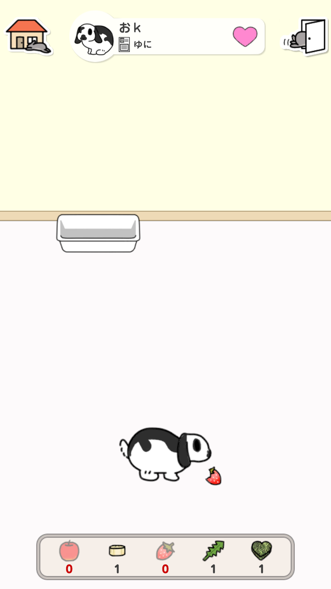 オンライン機能を利用して、他のユーザーのお部屋に遊びに行き、そこで暮らすうさぎさんにおやつをあげて交流することができます。