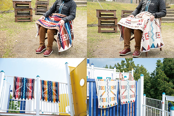 この柔らかさと厚みを生かすことで、小雨除けや、寒い時に羽織ったり、タオルケットや畳んで枕替わりにとアイデア次第で無限の可能性があります。