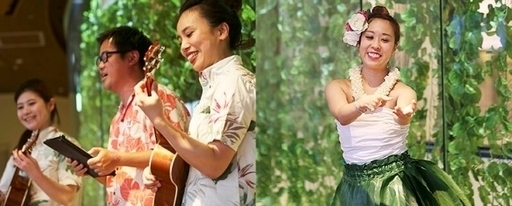 爽やかな日差しが差し込む席で、華やかなハワイアンショーをお楽しみいただけます。