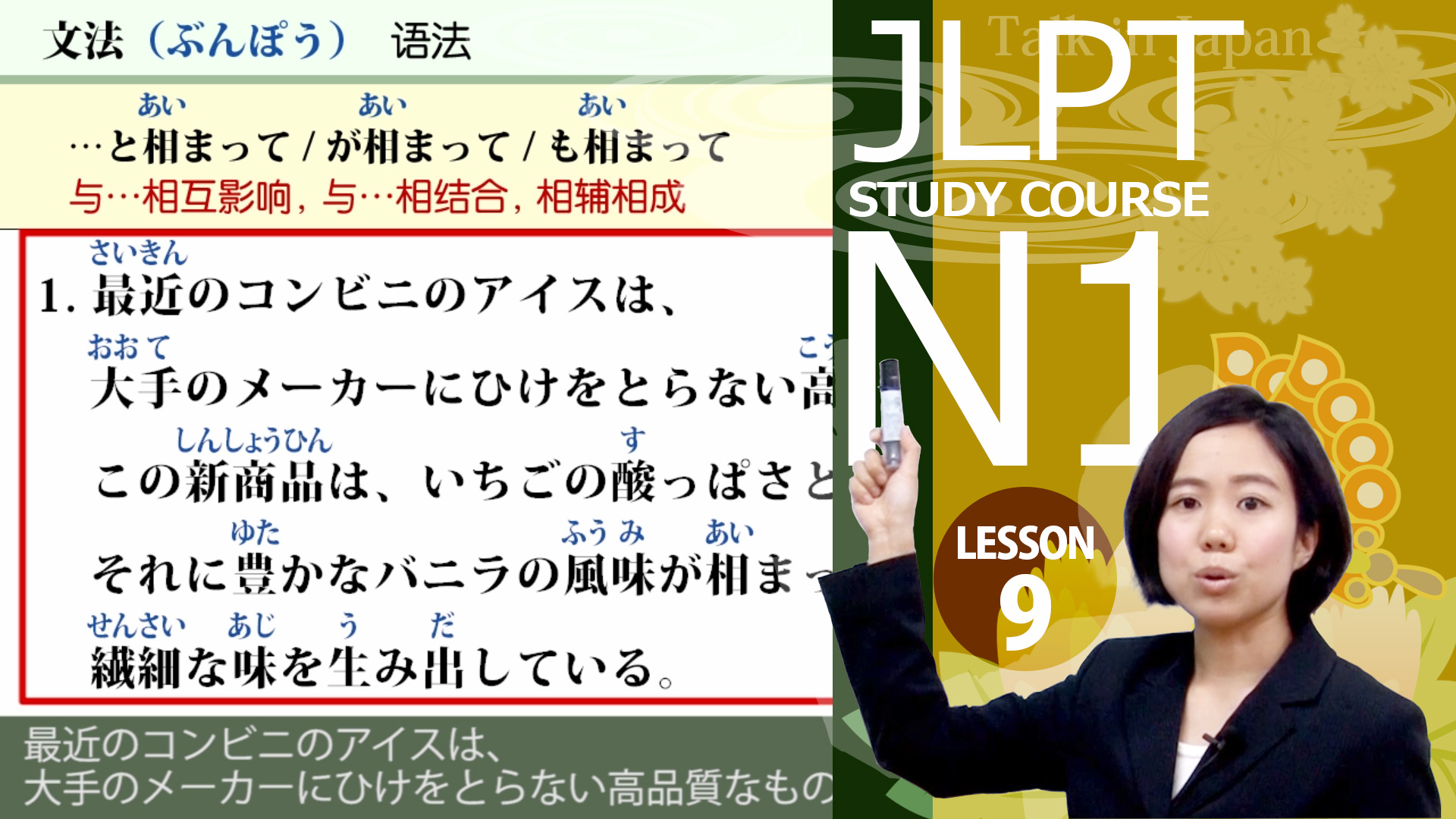 上級日本語学習者に向け、ナレーションは全部日本語字幕付いています。中国語のテキストも用意しておりますので、わからないところがあれば、テキストにご参考ください。この教材は日本語を母国語としない人を対象にしています。一般の上級日本語学習者でも、上級のビジネス日本語を勉強したい学習者でも、日本語能力試験N1の受験生にもご利用いただける教材になっております。日本語の学習能力の向上、日本語能力試験N1語学資格の取得、上級ビジネス日本語の習得に役立ちます。日本国内外の日本語学校、大学、日系企業の外国人社員日本語研修に最適な教材になっております。