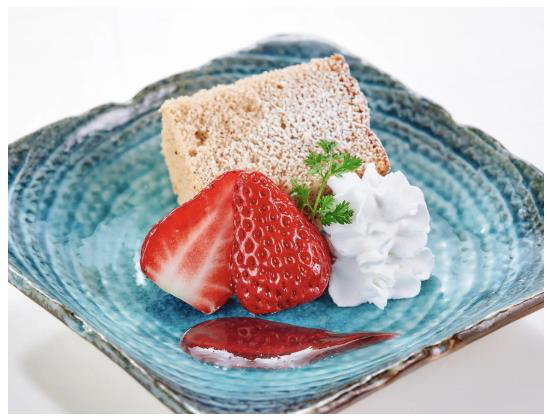紅茶のふわふわシフォンケーキに生クリームと いちごを添えて上品な味わいをお楽しみください。