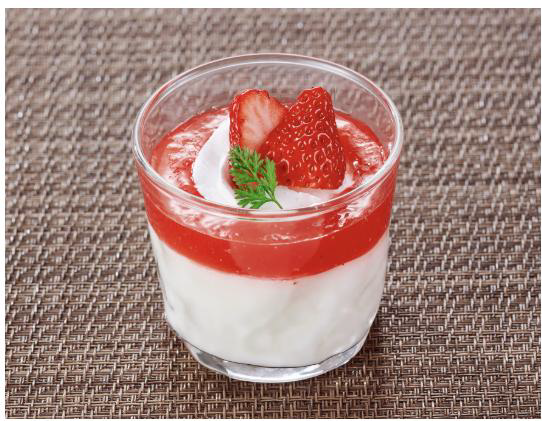 あまおうのジュレとなめらかプリンのマッチングでいちごの風味が口いっぱいに広がります。
