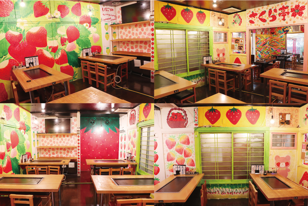 アートに囲まれたロケーションでお好み焼きもんじゃ焼きを提供する「さくら亭」にこの度、苺で埋め尽くされたお部屋が誕生いたしました。