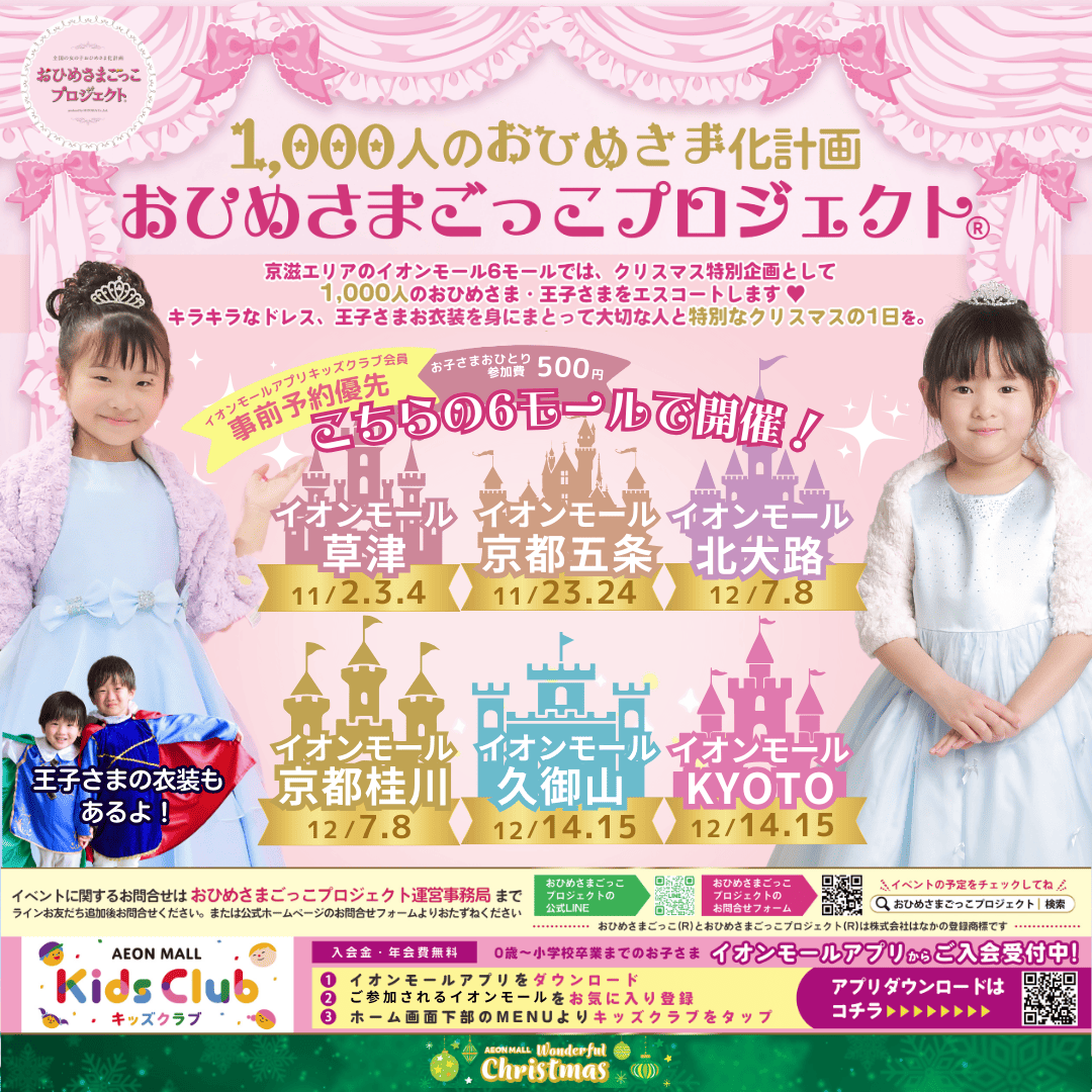 京滋エリアのイオンモール6モールで、おひめさまごっこプロジェクト(R)×イオンモール クリスマス特別プロジェクト 開催決定!