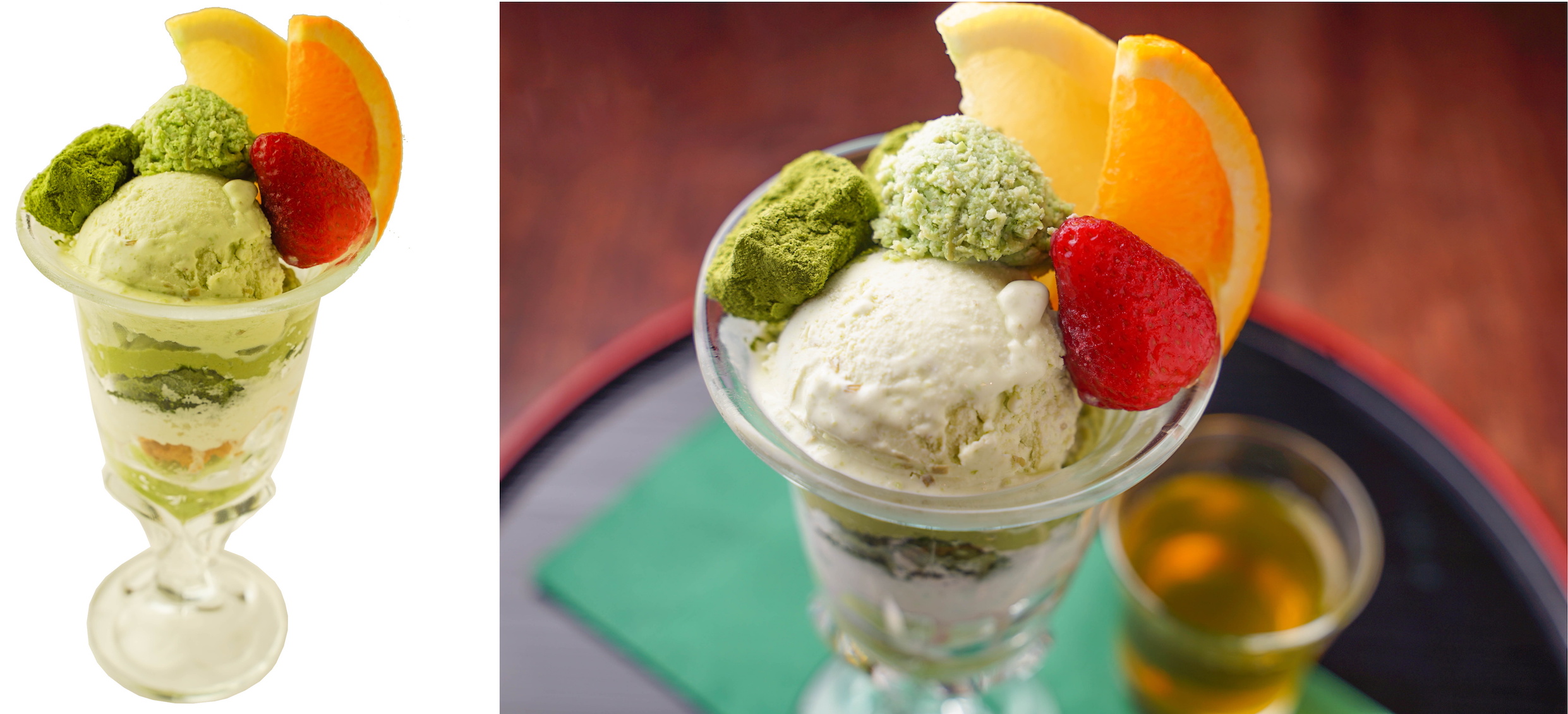 したパフェ。抹茶とだだちゃ豆の健康食材をふんだんに使ったギルトフリ
