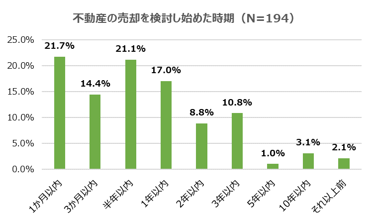 「売却を検討し始めたのは1位『1か月以内』、2位『半年以内』!」
