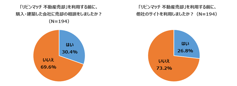 リビン・テクノロジーズ株式会社は、「リビンマッチ 不動産売却」を利用し、不動産会社に査定を依頼した「不動産を売却したい」または「不動産売却を検討している」という20歳以上の男女全国194人を対象に、「不動産売却一括査定サイトの利用」について調査しました。