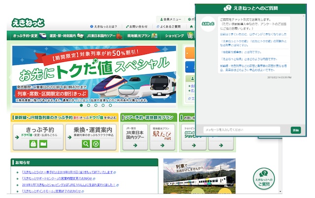 JR東日本のインターネット予約サイト「えきねっと」へAIを活用したチャットボットを導入します