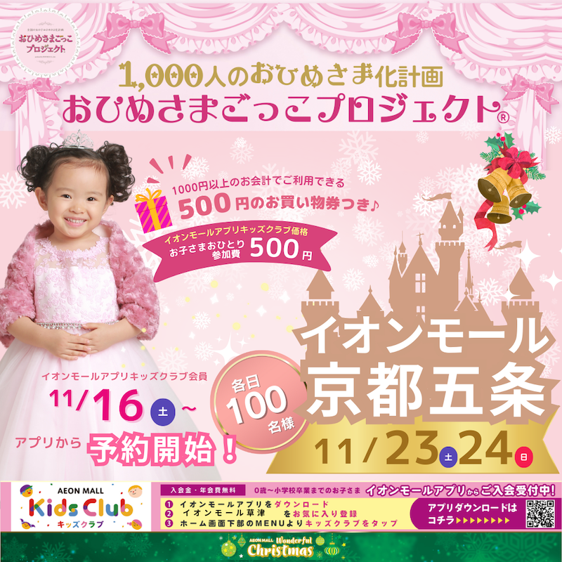 【11/23.24京都五条開催】AEON MALL Wonderful Christmas 1,000人のおひめさま化計画 おひめさまごっこプロジェクト(R)