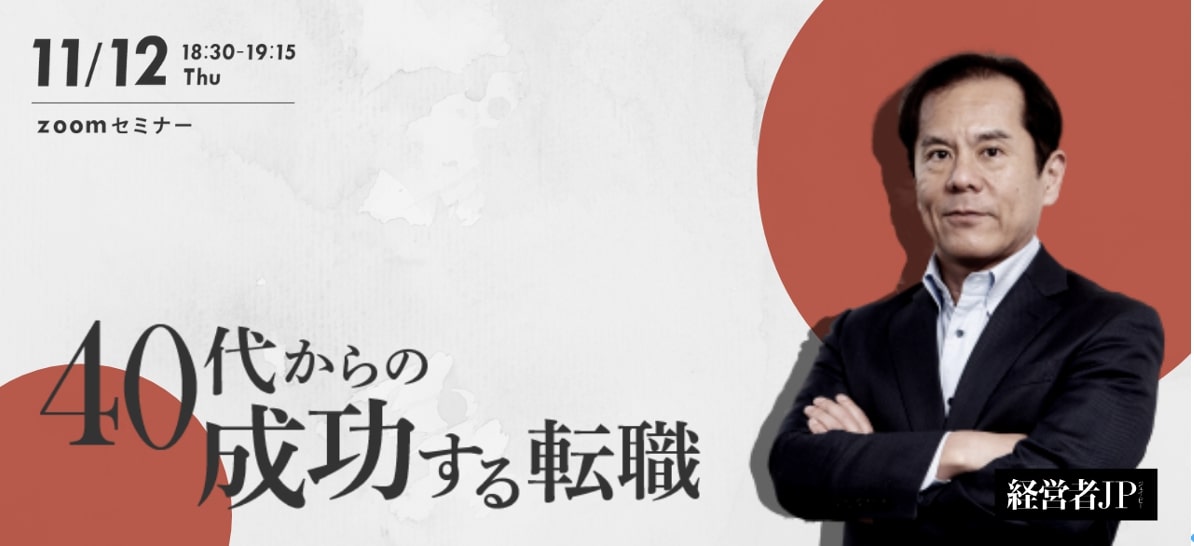 株式会社 経営者JP(東京都渋谷区、代表取締役社長・CEO 井上和幸)が運営する会員制プラットフォーム「KEIEISHA TERRACE」(https://keieishaterrace.jp)では、経営幹部やリーダーの方を対象として11月12日(木)にzoomセミナーを開催します。