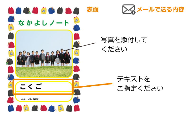 入学式や春の運動会で撮影したクラスの集合写真をノートの表紙に掲載!クラス全員で同じノートを使って、お家に帰ってお友達の顔と名前を親子の話題に!お友達が出来たこと、どの子と仲が良いかも自然と会話になるのでは。
