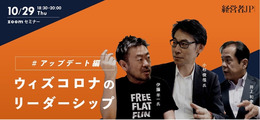 ウィズコロナ下においてオンラインワークが常態化する中、今後求められるリーダーシップとは一体どのようなものなのでしょうか。以前(6/23)、弊社では同様のテーマでセミナーを開催し大好評を頂きましたが、今回、10月29日(木)開催の【アップデート編】では、ここ直近での実際の各社取り組みや、そこから見えてきた課題などを踏まえ「これからのリーダーシップ」を改めて提唱していきます。当日はリーダーシップの専門家である伊藤羊一氏と小杉俊哉氏をゲストにお迎えし、弊社代表井上とともに、ライブでクロストークを繰り広げていただきます。