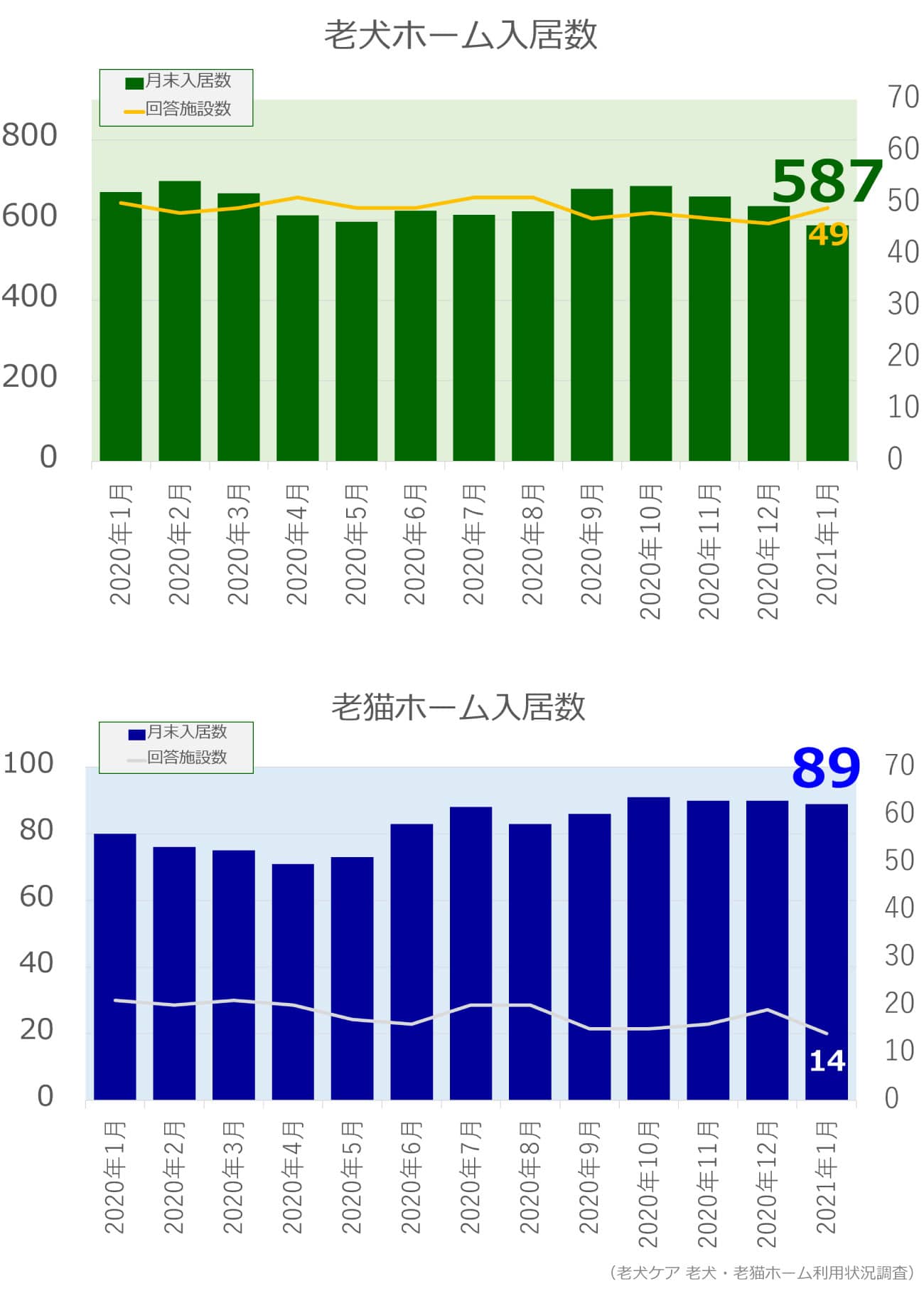 老犬・老猫ホーム入居数調査(2021年1月)