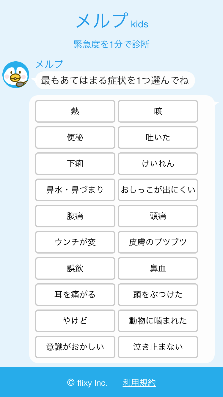 自動診断サービスを提供するフリクシーが、こどもの緊急度を1分で診断するアプリ「メルプkids」を提供開始
