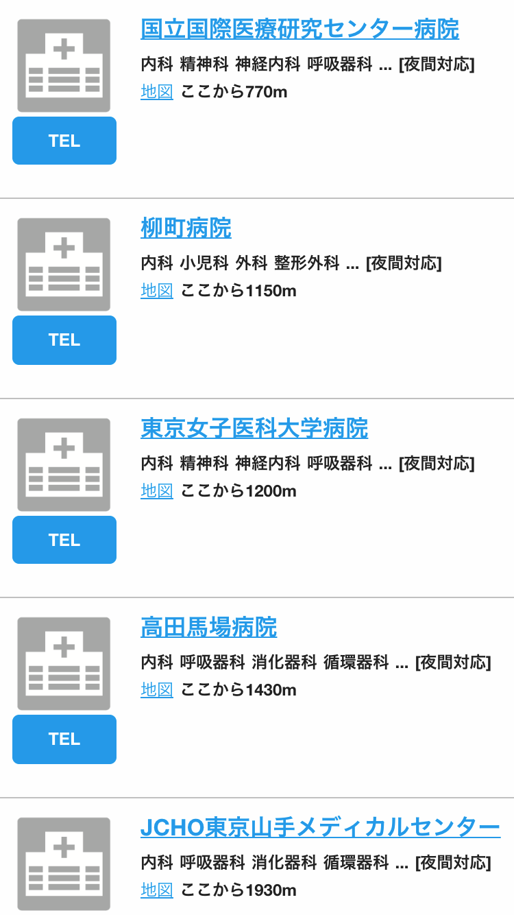 現在地周辺の病院をすぐに検索できます。