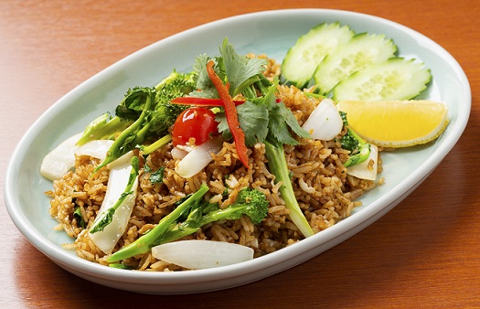 タイでは“鉄道チャーハン”と呼ばれている黒色チャーハン。ランチでも提供