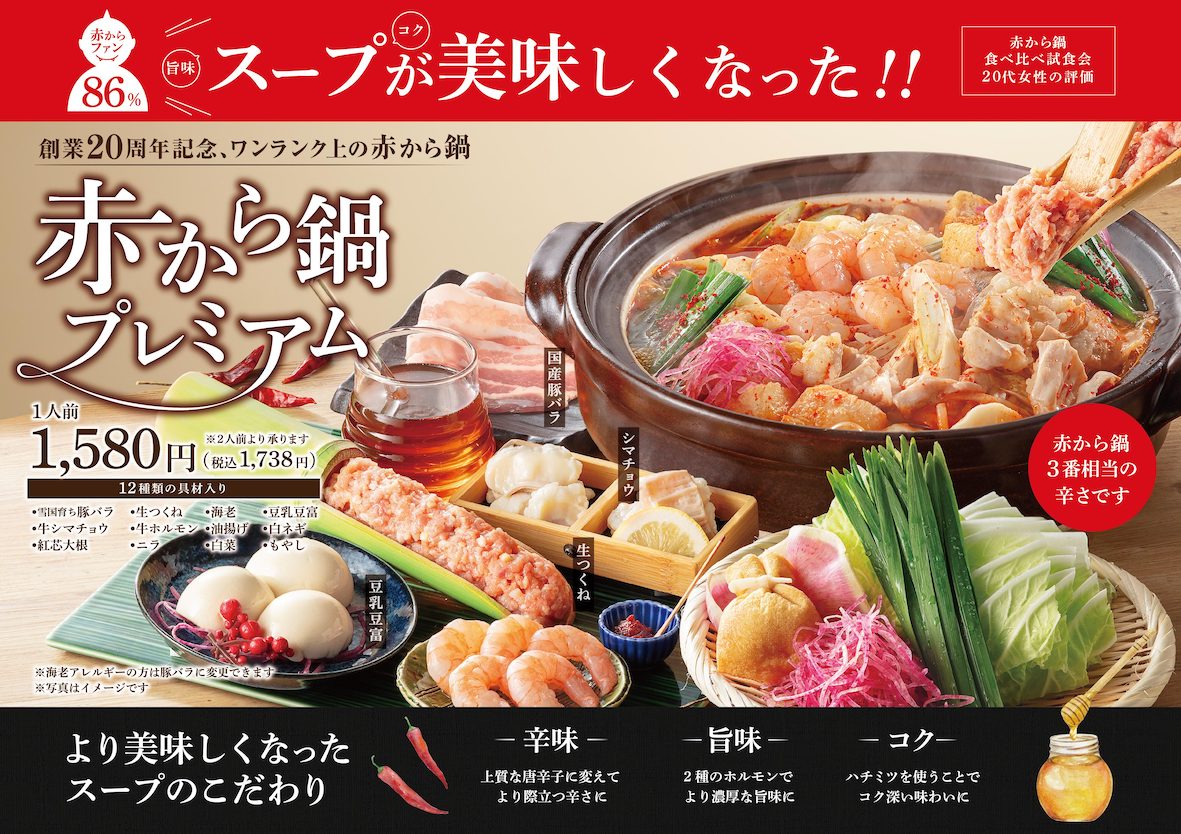 創業20年を記念して「赤から鍋」の進化に挑戦! ワンランク上の「赤から鍋プレミアム」を10月1日より 全国159店にて期間限定で提供開始