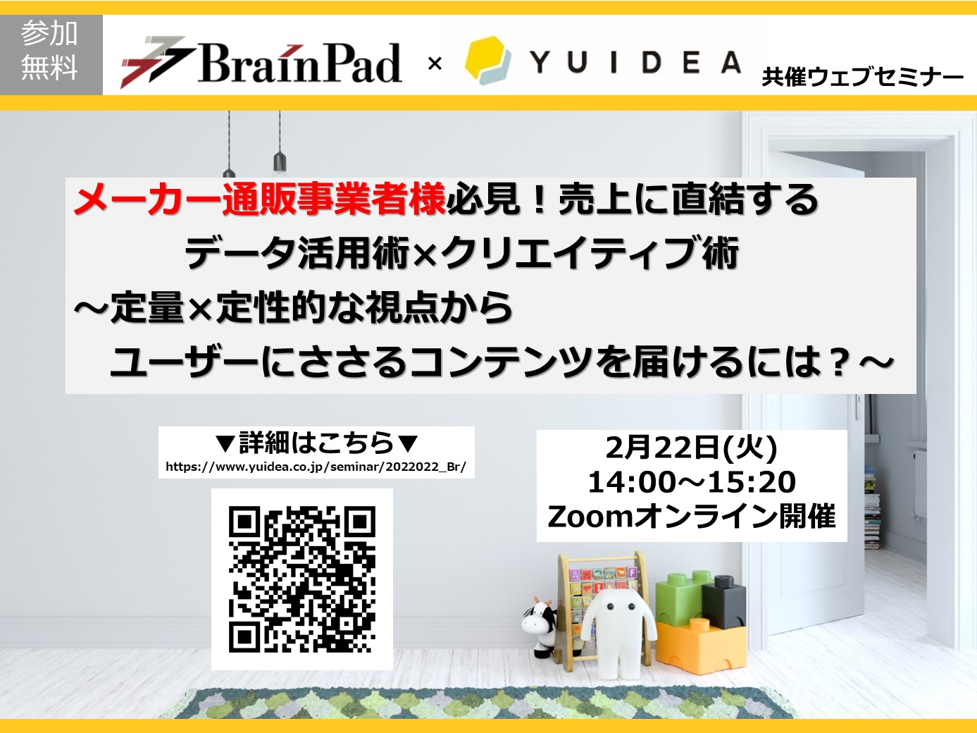 【2/22】ブレインパッド × YUIDEA【オンラインセミナー(ZOOM)】 メーカー通販事業者様必見!売上に直結するデータ活用術×クリエイティブ術