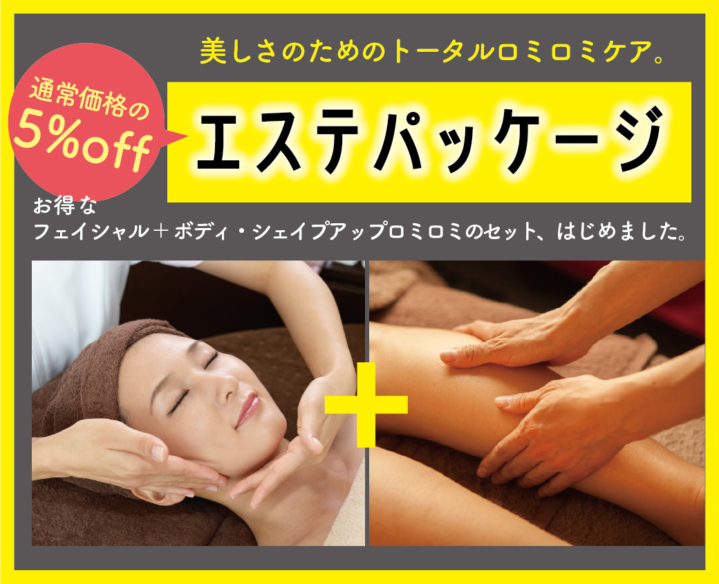 ●エステパッケージB|フェイシャル40分+ボディ・シェイプアップロミロミ90分