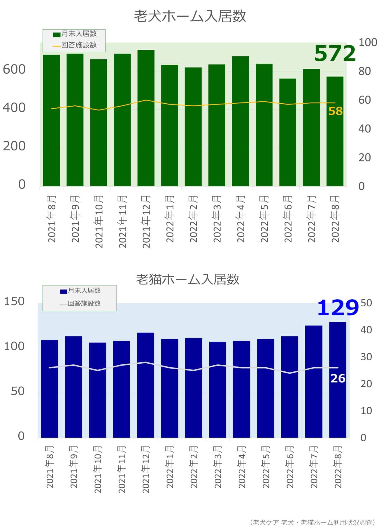 老犬・老猫ホーム入居数調査(2022年8月)