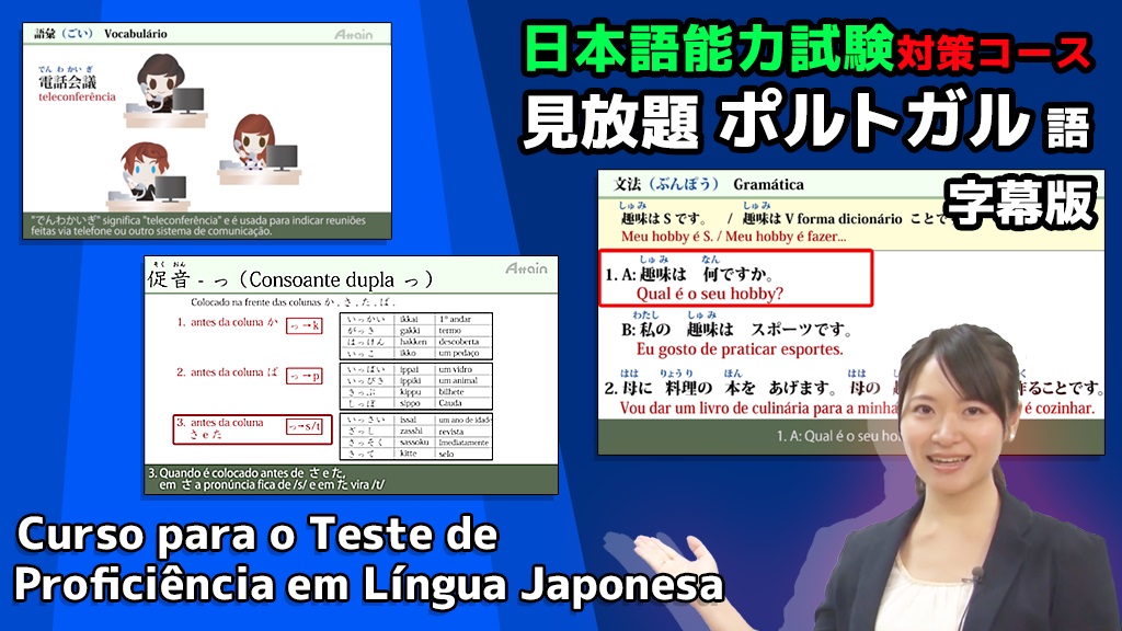 オンライン日本語能力試験(JLPT)対策教材販売、eラーニング制作のアテイン株式会社(本社:東京都千代田区、電話:03-3255-4721、代表本多成人、資本金1億1470万円)は、日本語能力試験対策教材ポルトガル語字幕版入門編、漢字編、N5コース、N4コースをサブスクリプション・定額見放題で6月10日から個人向けに提供開始致しました。