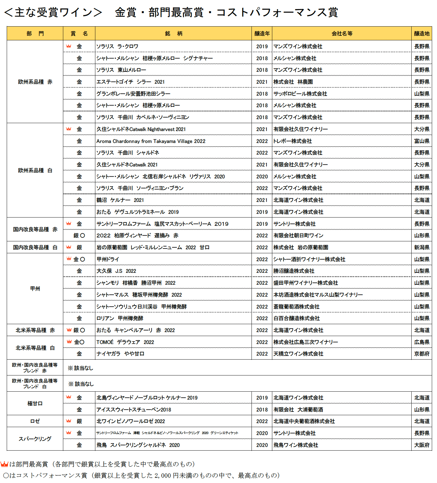 ▲参考資料:2023年の主な受賞ワイン
