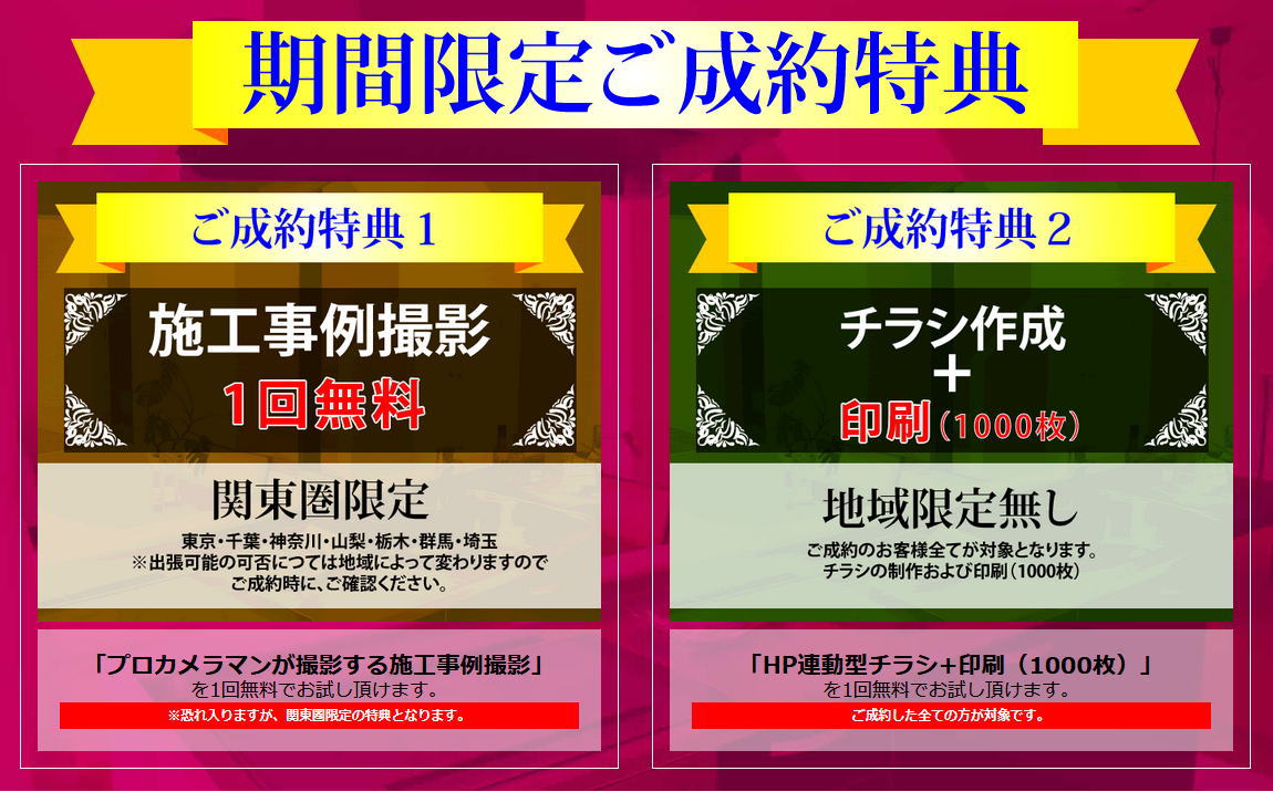 期間限定成約特典としまして、