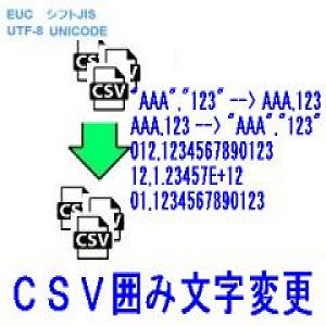 CSVファイルの囲み文字(ダブルコーテーション)を変更したり Excelで読み込んだ時に、頭の0とれ、指数表示、日付になる