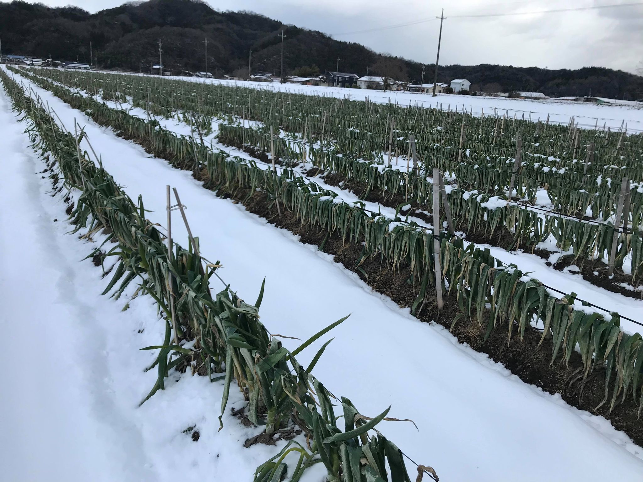 鳥取県では、昨年12月半ばの初雪で30cm、年末の寒波で50cmの積雪があり、雪の下で甘みを増してきた白ねぎが、この度の1月の最強寒波の強い寒さに耐え甘さのピークを迎えています。