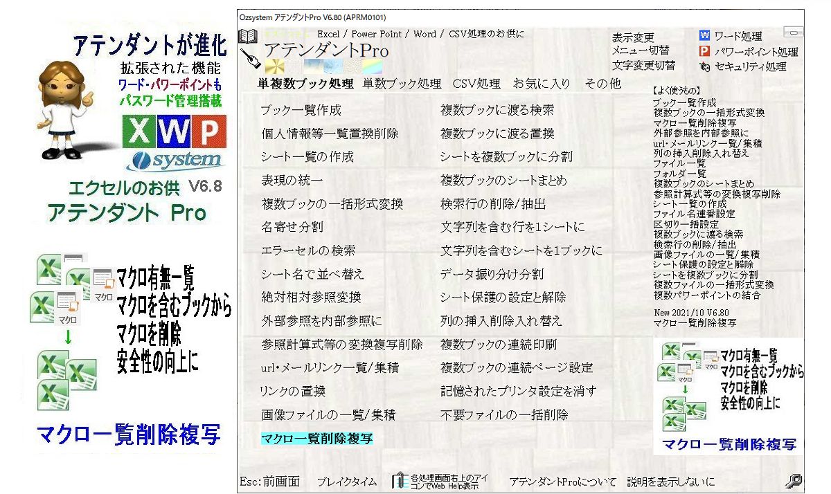 アテンダントProは、現場から生まれたExcel/Power Point/Word/CSV/セキュリティ処理をより便利するツール集です。