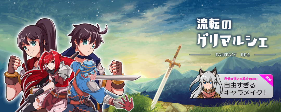 『流転のグリマルシェ』は、万能物質「エーテル」があふれる夢の大地「グリマルシェ大陸」を舞台に、数々の仲間たちと共に戦いながら物語を紡いでいくキャラクタークリエイトRPGです。