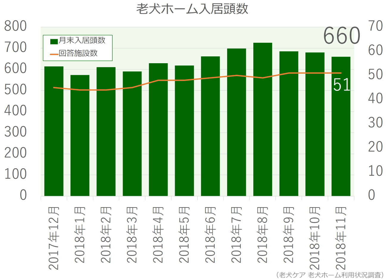 ◎2018年11月末時点の老犬ホーム入居頭数は660頭