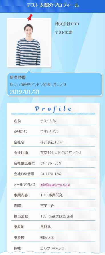 企業紹介のホームページではなく、営業マン個人の紹介ページになりますのでクライアントに出身地や