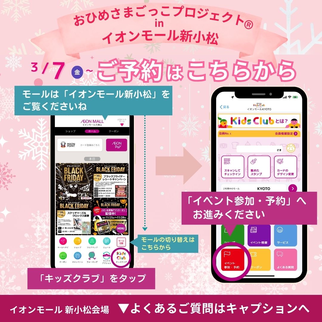 【参加条件】イオンモールアプリ事前予約制 おひとり様 500円 (1端末あたりおひとり様のみのご予約になります)