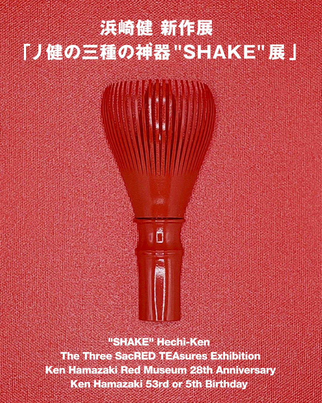 浜崎健立現代美術館28周年&浜崎健5歳(53歳)誕生日祭とRED TEA CEREMONYを具現化した三部作の第一弾「丿健の三種の神'器 "SHAKE" 展」を開催します。