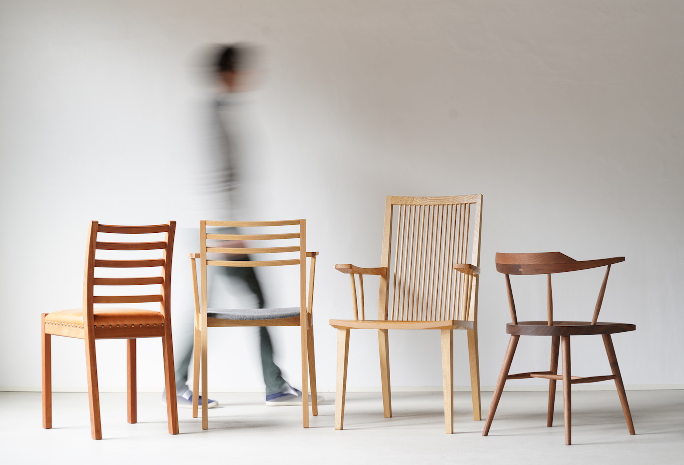 「きょうと椅子」は、全国の木工家が一つひとつ丁寧に製作した様々な椅子に自由に座り、
