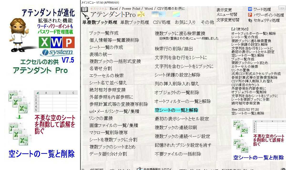 アテンダントProをV7.5バージョンアップ。余計なシートの削除忘れを防ぐ空シートの一覧と削除をリリース