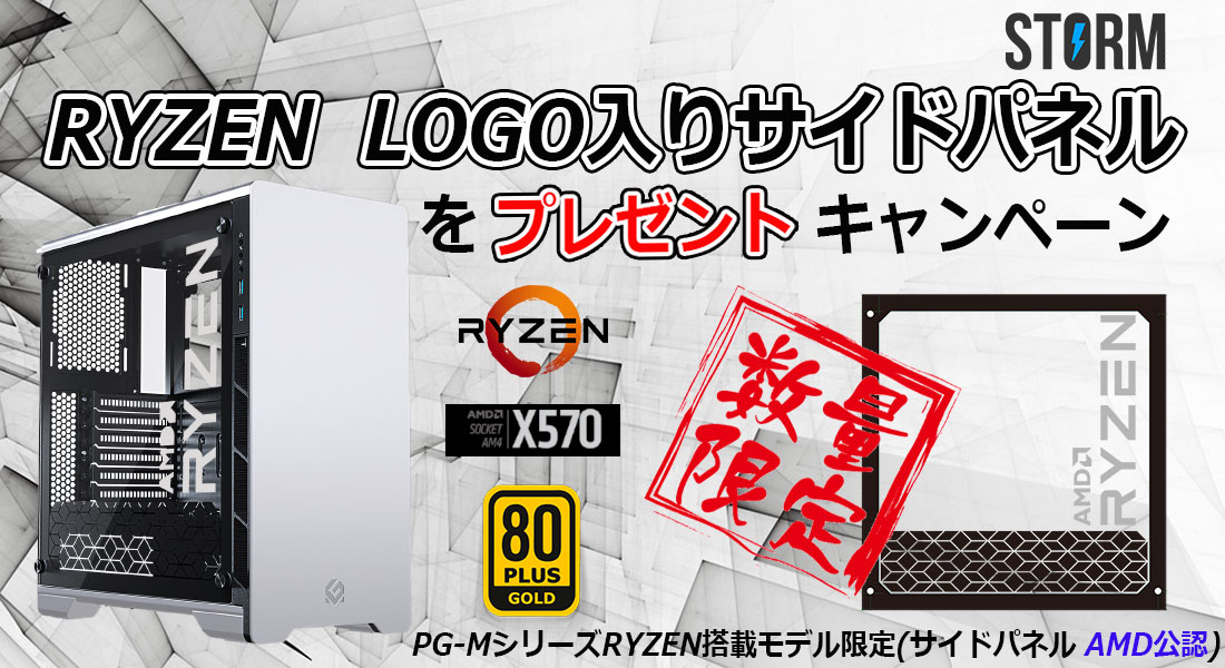 台数限定 AMD公認 Ryzen コラボレーション特製ガラスパネル同梱 Ryzen7搭載アルミ仕様ゲーミングPC販売開始